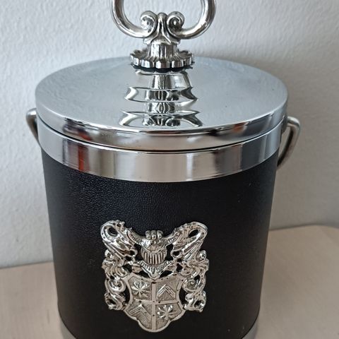 Jääpaloille, tyylikäs merkki edessä. Mustaa kangasta ja metallia ulkopuolella. Vintage