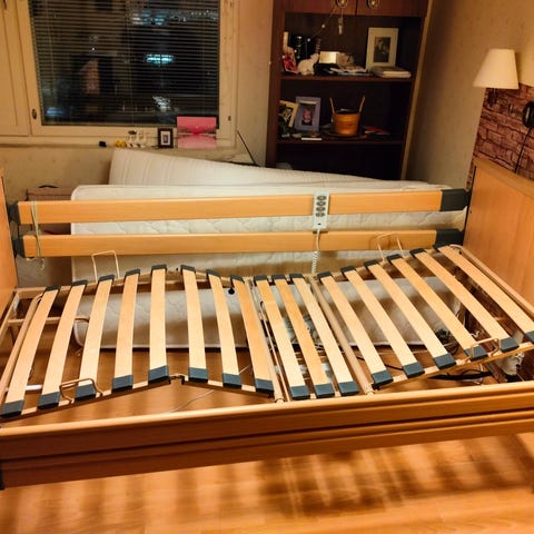 Kesäkuussa 2024 ostettu ja käyttöönotettu (käytössä vain puoli vuotta) kuin uusi hoivasänky. Laadukas sänky, Unikulman uusin malli, ovh 5.305 €. Takuu vielä voimassa 6/2026 asti. Hintapyyntö 1.200 €, tule katsomaan ja tee tarjous.