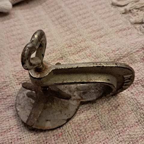 Vanha, antiikkinen kellokoneistolla toimiva paistinkääntäjä.