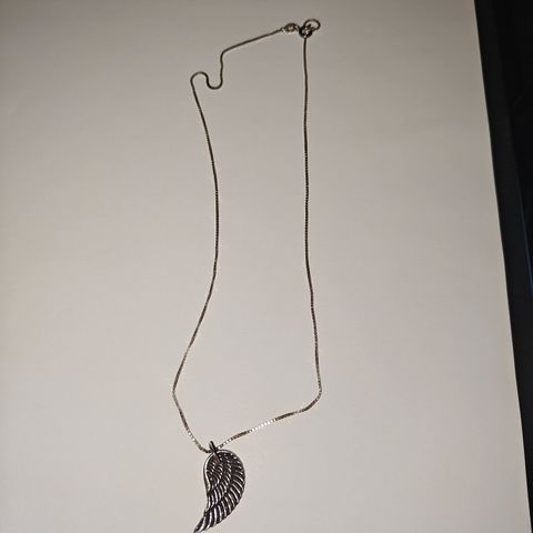 Kaunis, hopea (925), muutaman kerran käytetty siipi riipus. Kirkkailla zirkonikivillä. Ketju hopeaa (925). Ketjun 1/2 mitta 20 cm.