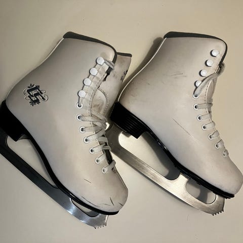 Hyväkuntoiset kaunoluistimet. Kengän sisämitta 22,5 cm eli olisikohan koko noin 36,5. Etuläpässä on merkintä GS4
