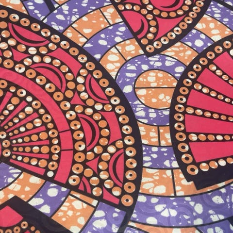 Da Viva - vahakuviokangas, African wax print. Käyttämätön, 550 x 110 cm. Hyvä painojälki.