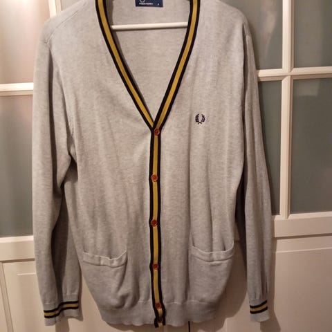 Fred Perryn Reissues-malliston musta neuletakki 100 % villaa. Tehty Italiassa. Käytetty vain pari kertaa, kunto uudenveroinen. Nouto Jyväskylän keskustasta tai postilla minne päin Suomea vaan.