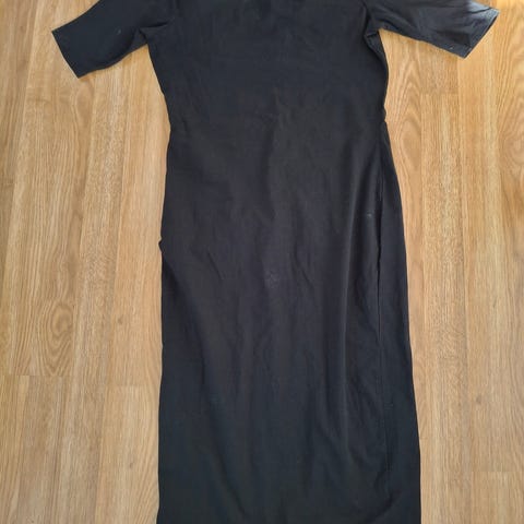 - Musta-valkoinen pallokuvioinen, joustava kotelomekko/ Dorothy Perkins. Pitsiä hihoissa. Takana vetoketju ja helmahalkio.