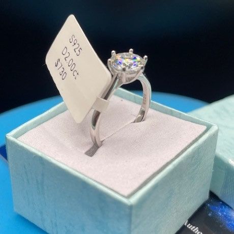 Sormus hopea 925, 1.00 karaatin moissaniitti, koko 18, aitoustodistus