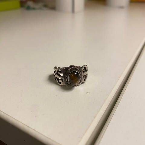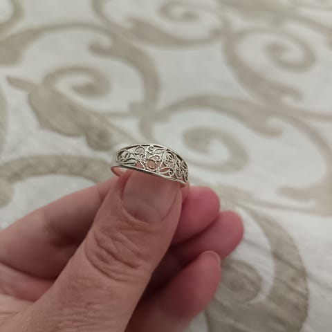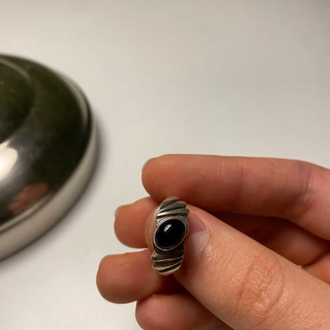 Yksinkertaisen kaunis hopeasormus, 7 korukiveä. Leima. Kunto moitteeton.