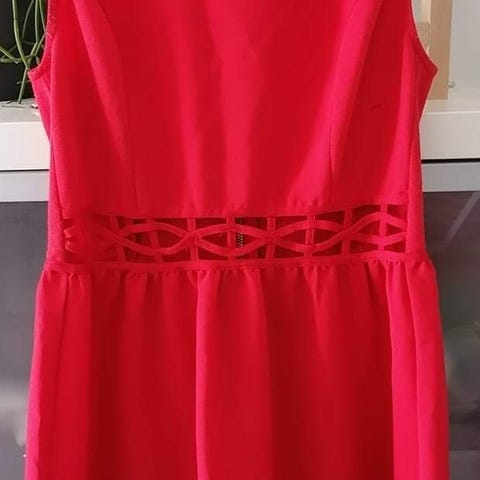 Kirkkaanpunainen, lyhythihainen juhlamekko (silkkiä /keinosilkkiä?)