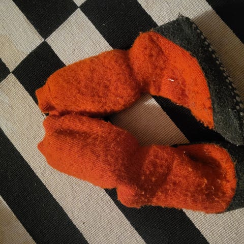 Paksut lämpimät villasukat, joissa erikseen kunnon tossupohjat, joissa liukueste. Kunto: hyvä. Merkki: Falke. Koko: 25-26.