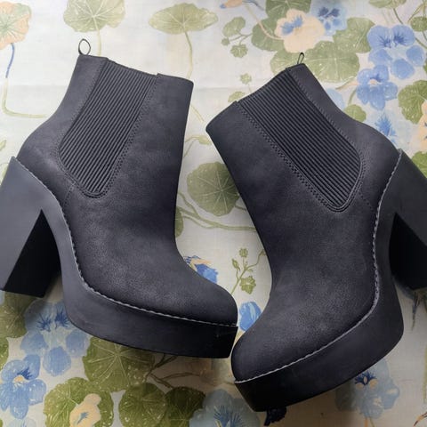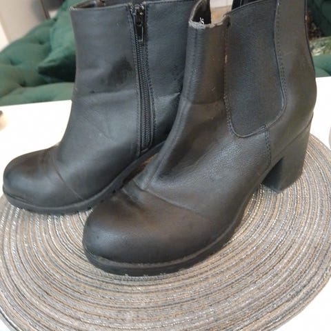 Mustat ohuet mokkapintaiset nilkkurit, jossa vetoketju sivussa. 5cm piikkikorko.