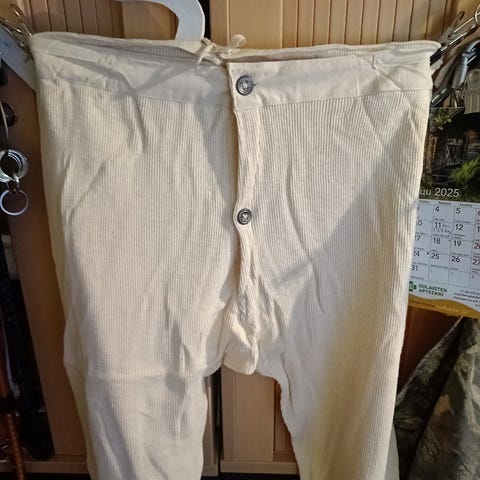 Uusia housuja. Hyvän tuntoiset ja mukavat housut jalassa. Osta vaikka lapselle ja muokkaa pienemmäksi, harvemmin saa edes kangasta tähän hintaan. Tulivat minulle kaupanpäällisinä, joten halvalla eteenpäin. Viimesen päälle vaikka marjastukseen.
