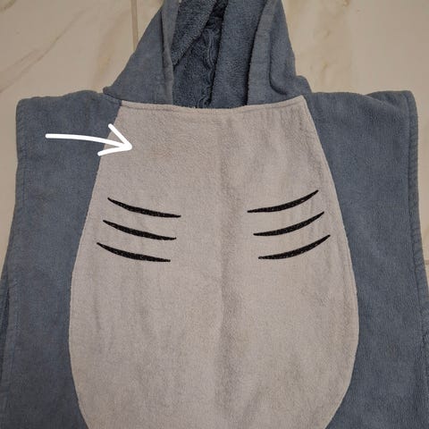 Myydään Hai huppu pyyhe. Koko 60x70 cm. Väri vaaleanharmaa.