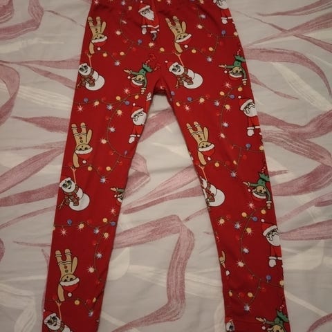 Lupilun jouluiset neulelegginsit. Koko 110/116. Uutena ostetut, melko vähän pidetyt. Siistissä, käytetyssä kunnossa.