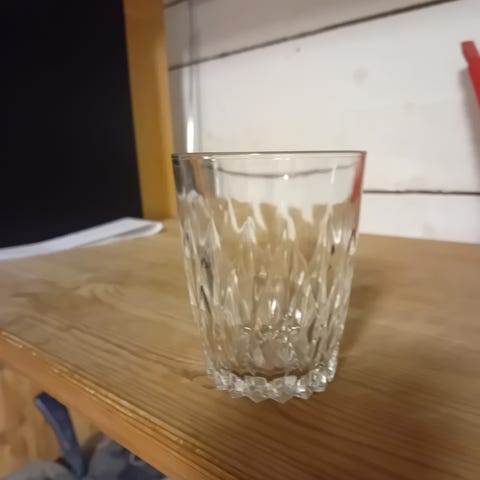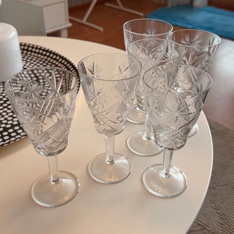 Neljä kristallista juomalasia. Yhteishinta kaikille neljälle lasille yhteensä 4 euroa.