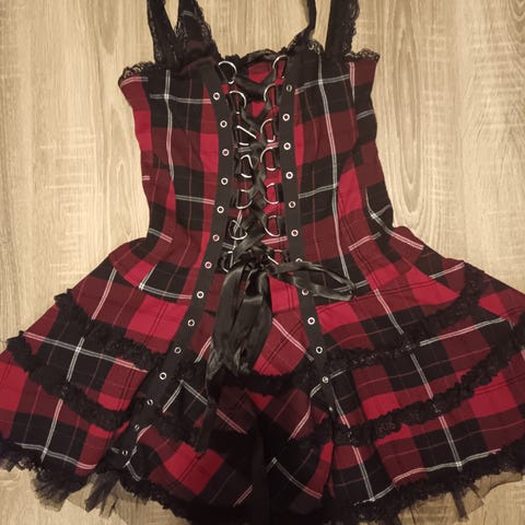 Emp:ltä ostettu goottityylinen mekko, jota ei ole kauheasti tullut käytettyä. Koko S ja venyy ihan jonkin verran, voisi mennä pienelle M kokoiselle. Merkkiä Gothicana.