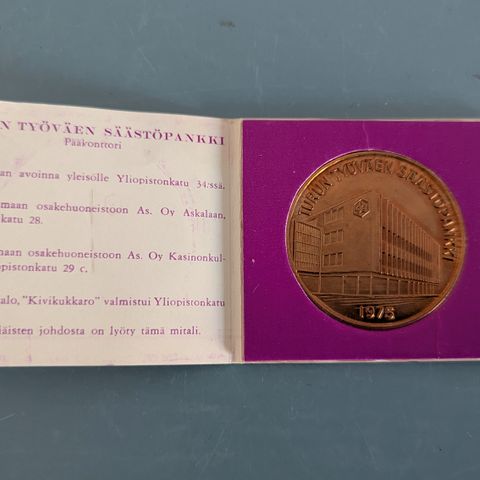 Väestönsuojelukeskuksen 50 v. Juhlmerkki 14.9.1989. Sorsa Oy:n suunnittelema, Tillanderin valmistama. Näitä tehty vain 40 kpl. Hopeaa 25%, paino 47g. Nouto Vantaa tai postitus.