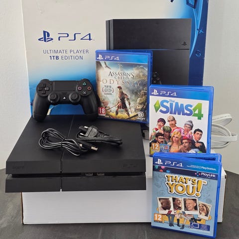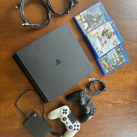 Playstation PS4 Slim 1TB, 2 ohjainta. 2 peliä.