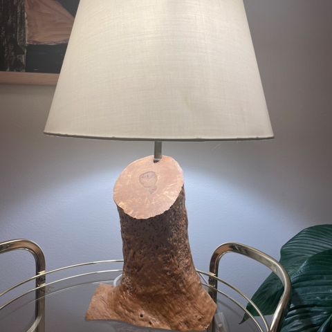 Kuvien mukainen pahkasta ja puusta tehty vanha valaisin.