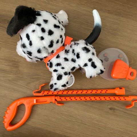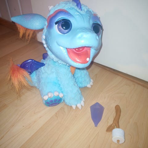 Hasbro Furreal Friends söpö tyttölelukoira. Valmistettu 2013. Toimii pattereilla. Haukkuu iloisesti, nuolee (äänellä) ja murisee jos lelua yrittää ottaa suusta. Lelun saa irroitettua suusta. Etutassut liikkuvat, joten saa istuvaan tai makaavaan asentoon. Erittäin hyväkuntoinen. Patterit jo hiukan ehtoopuolella joten ne ei kuulu pakettiin.