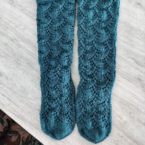 Pitsivillasukat. Neulotut 7-veljeksen langasta. Vahvistettu kantapää.
