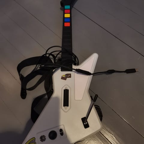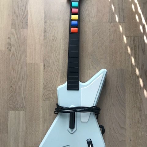 Kuvan mukainen täysin toimiva xplorer kitara usb johdolla. Mukana alkuperäinen pakkaus, hihna ja avaamaton tarra arkki. Peliä ei ole valitettavasti mukana. Toiminta testattu. Toimii myös tietokoneella esim Clone Hero pelissä. Postitus onnistuu tarvittaessa.