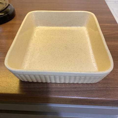 Myydään kuvan ruskea keraaminen uunivuoka.