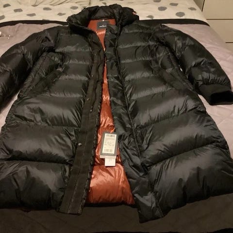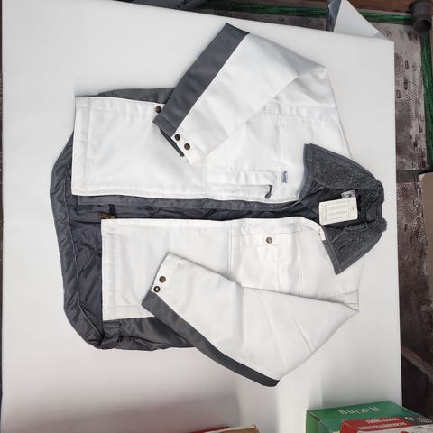 Koko on reilu L. Kangas, taskut, vetoketjut ja kiristykset kunnossa. Erinomainen suojaava huppu.