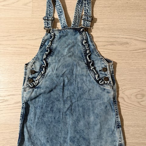 Ihana Popin farkkulappuhame kokoa 104, siistikuntoinen kaikinpuolin, henkseleissä säätövaraa.