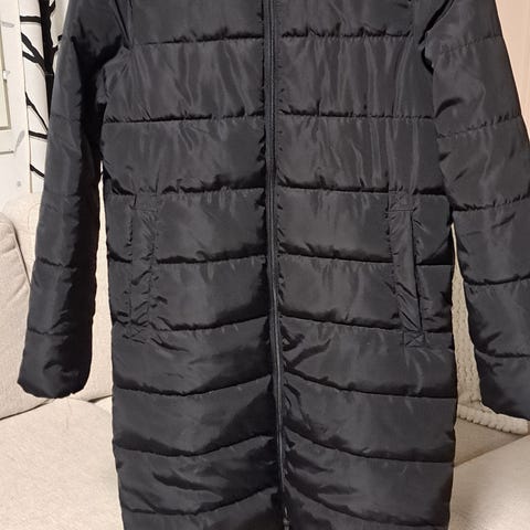 Myydään uuden veroinen musta tyttöjen 158cm toppatakki. Vyötäröllä säätö mahdollisuus, resorit hihansuissa. Pari kertaa käytössä vain ollut.