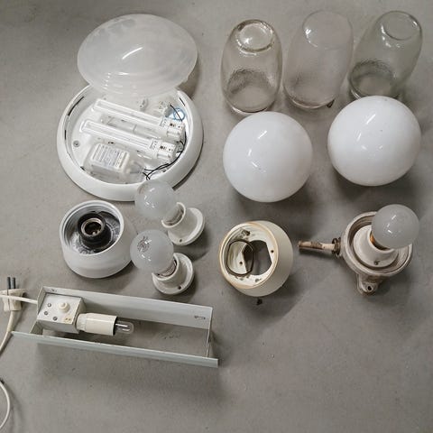 Myynnissä Lamppuja ja muuta tavaraa mitä kuvassa näkyy.