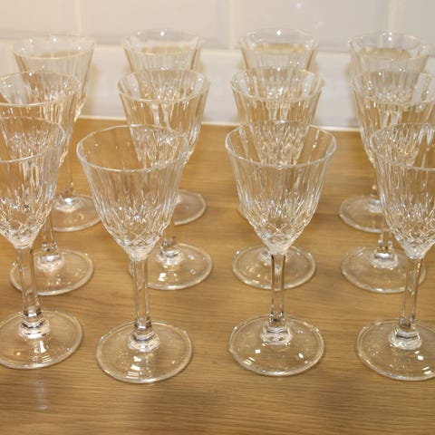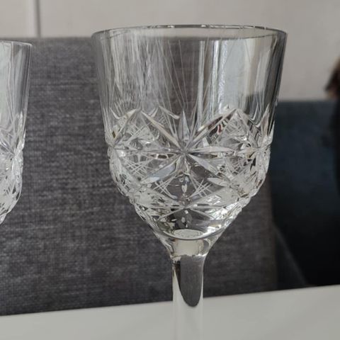 Setti: 6 kristallia olevia sherrylaseja ja hopeatarjotin.