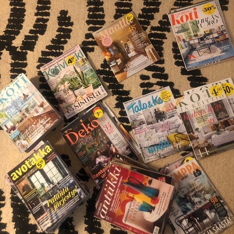 Kuvassa näkyvät Koti-lehdet. Olleet kylmässä varastossa, joten näihin on tarttunut varaston hajua.