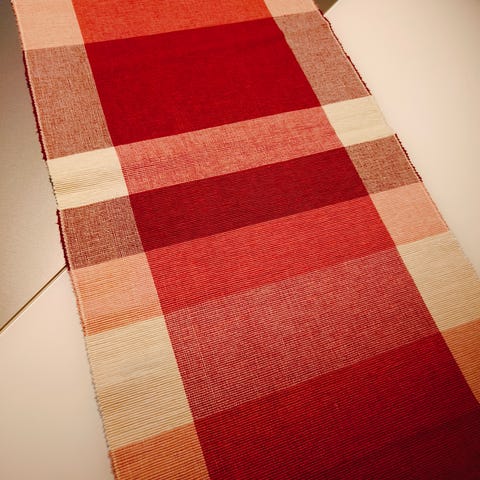 Hyväkuntoinen Pentikin huopainen, tummanpunainen kaitaliina.