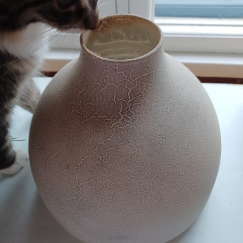 - kahvallisen, mattapintaisen maljakon korkeus n. 19,5 cm, suun halk. vajaa 3 cm