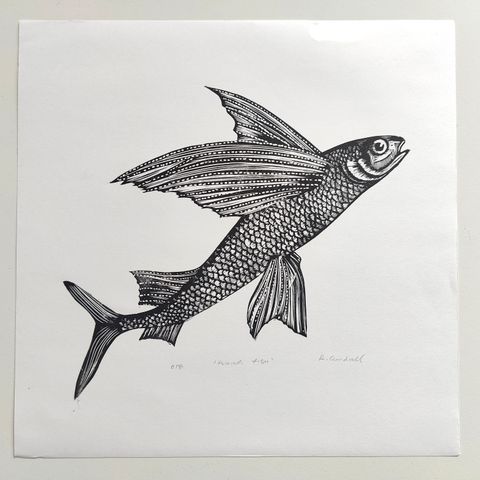 Anja Snellmanin signeeraama linografia vuodelta 1988.