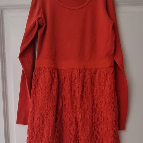 146/152 punainen mekko, edessä kääntö paljetti sydän kulta/punainen. Moitteeton kunto. 10e