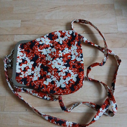 Hyväkuntoinen Marimekon kukkarolaukku. Kangas on paksua ja tukevaa, ja olkahihna on irrotettava. Koko on 15,5 x 15 cm (k x l). Ostettu Marimekosta muutama vuosi sitten. Pesty kerran käsin. Käytön jälkiä näkyy hieman, mutta laukku ei näytä kuluneelta.