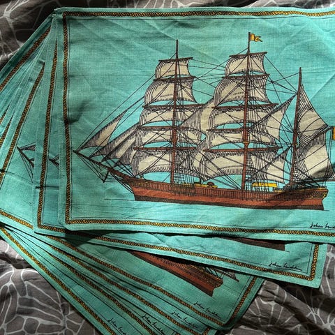 Vanhat purjeveneet - aiheiset korkista valmistetut kovapintaiset pöytätabletit. The National Trust tuote. Aiheet: