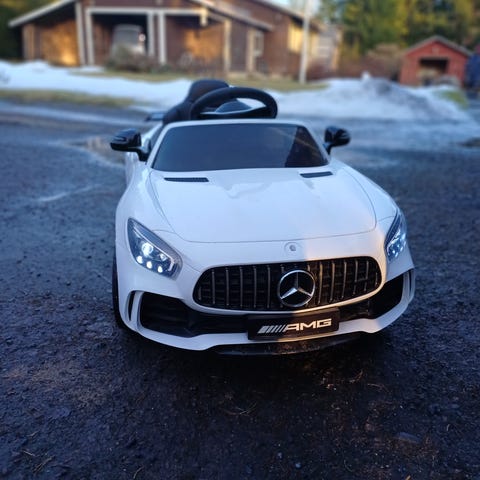 Upeasta Mercedes GTR AMG superautosta löytyy paras mahdollinen varustepaketti. Urheiluistuin, iso takaspoileri, Mercedes Benz -logot, hienot ajovalot ja moottorin käynnistysääni, mitä muuta sitä pieni rallikuski voi edes kaivata? Mukana toimitettavan kauko-ohjaimen avulla vanhemmat voivat ohjastaa autoa myös etäältä.