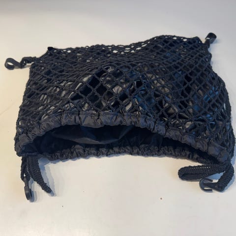Lastenrattaiden / lastenvaunujen sadesuoja. Kuvaan viritelty banaanilaatikon päälle. Sadesuojasta tulee lapselle huppu. Takana aukko, josta saa tavaroita lastenrattaan takaosaan. Takana olevan aukon reunasta revennyt vajaan 10cm matkalta (kuva 3), mutta ei sinänsä haittaa käyttöä. muuten kunto hyvä.