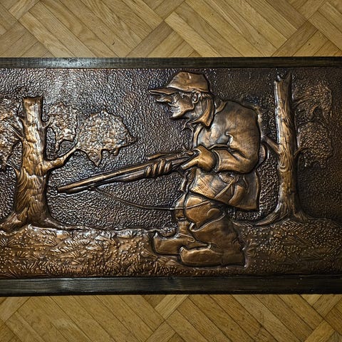 Vanha kuparinen taulu tuulimylly-aiheella. Halkaisija n. 37 cm.
