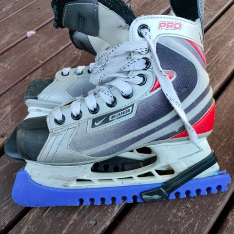(Luistimet on aiemmin teroitettu jääpalloon eli terä on hieman "suorempi" kuin jääkiekkoterä)