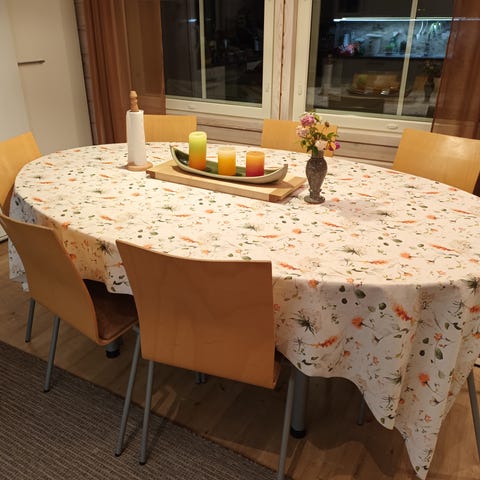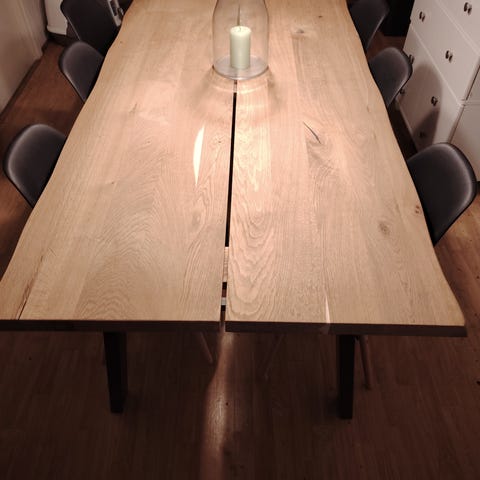 Ilmoituksen kuvissa osa valmistuneista tilatuista pöydistä. Pöytiä myös olohuoneeseen tai vaikka työpöydäksi.