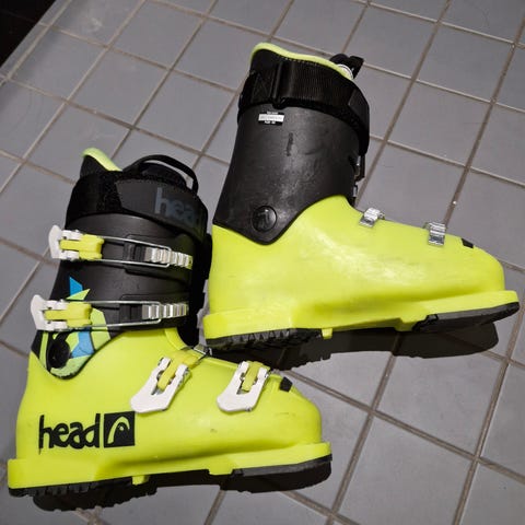 Head merkkiset laskettelu monot. Koko 24/24,5cm. Ulkopohjan pituus 285 mm. Olleet yhdellä lapsella kovassa käytössä, joten ulkopuolella kulumajälkiä (näkyy kuvissa), mutta täysin käyttökuntoiset. Sopivat myynnissä oleviin Salomonin suksiin.