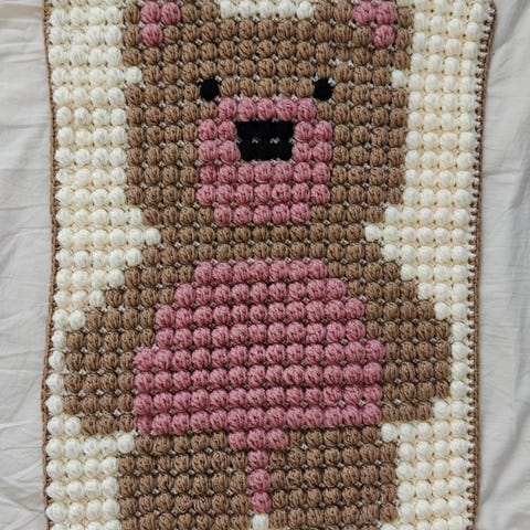 Erikoinen kolmiulotteinen virkattu seinävaate.