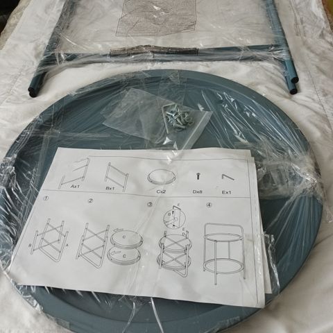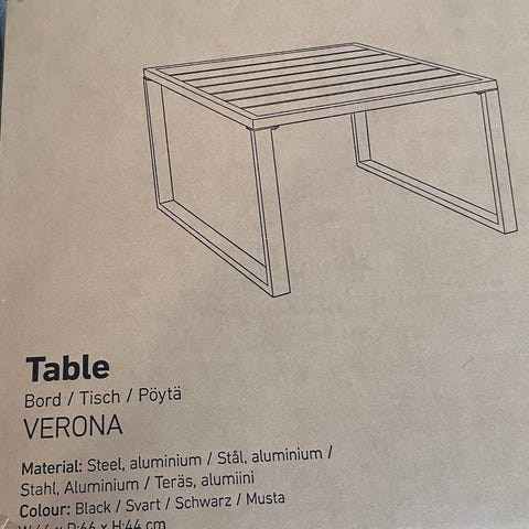 Musta metallinen pöytä sisä- tai ulkokäyttöön.