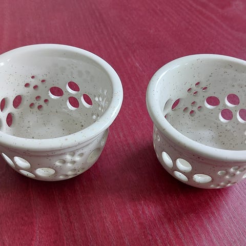 Tarjolla kaksi kappaletta Kultakeramiikan tuikkulyhtyjä