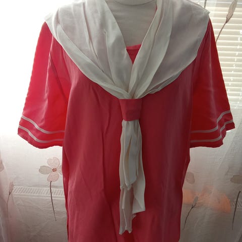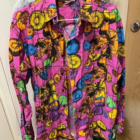 Söpö värikäs vintage t-paita napeilla. Tasku edessä. Ei lappua, mutta sanoisin XL. Pehmeä kangas.