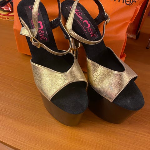 Kenkä cosmoksen kultakengät juhlaan kuin arkeen. Kultsaukset ehjät mm.koroissa, korkolaput kulumattomat. Koko 40, 39 jalka hyvä sopivuus. Koron korkeus 7cm kantapään korkeimmasta kohdasta.