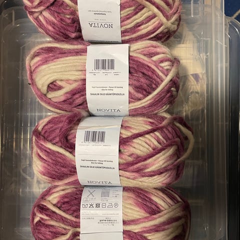 Myydään 5x 50g villalangat (Cortina Soft & Novita). 100% villaa. Kuvan yksi villalanka pois myynnistä.