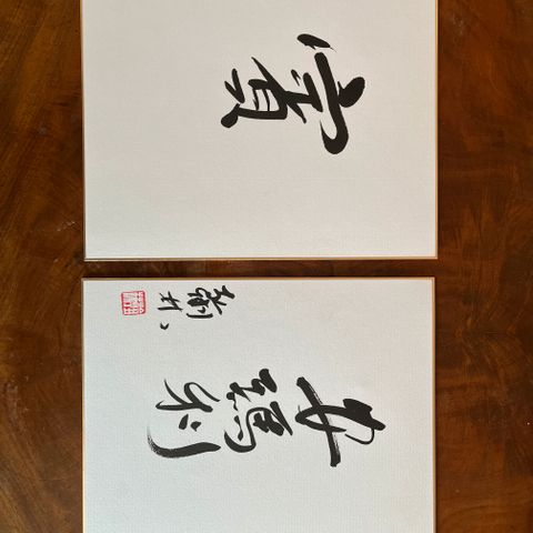 Hand brushed calligraphy. The meaning of the words is “ Breeze and Bright Moon”.